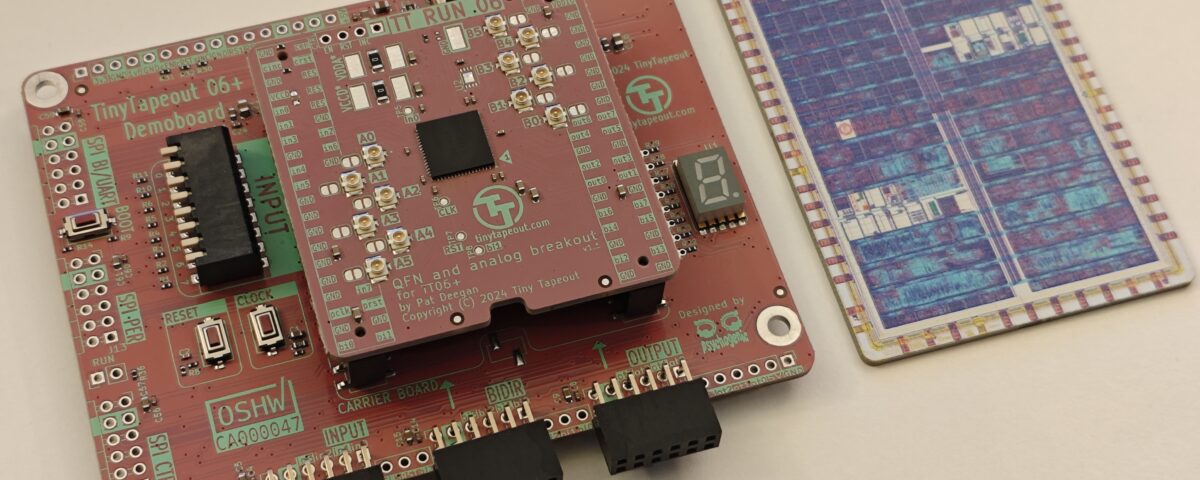 「TinyTapeoutで作る音源IC」に引き続き、個人でも参加できるASIC開発プロジェクト “TinyTapeout” の第6回の試作に参加して開発した自作8bit CPUです。 “TinyTapeout” そのものの紹介については「TinyTapeoutでオレオレICを作ろう」に書いていますので、そちらも併せてご覧ください。