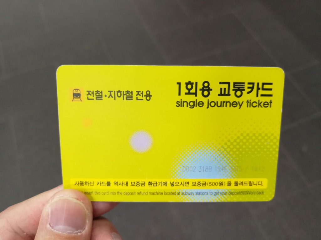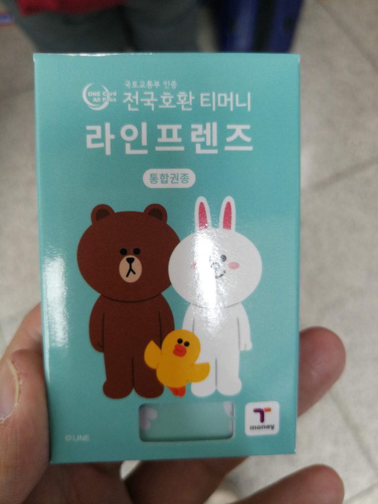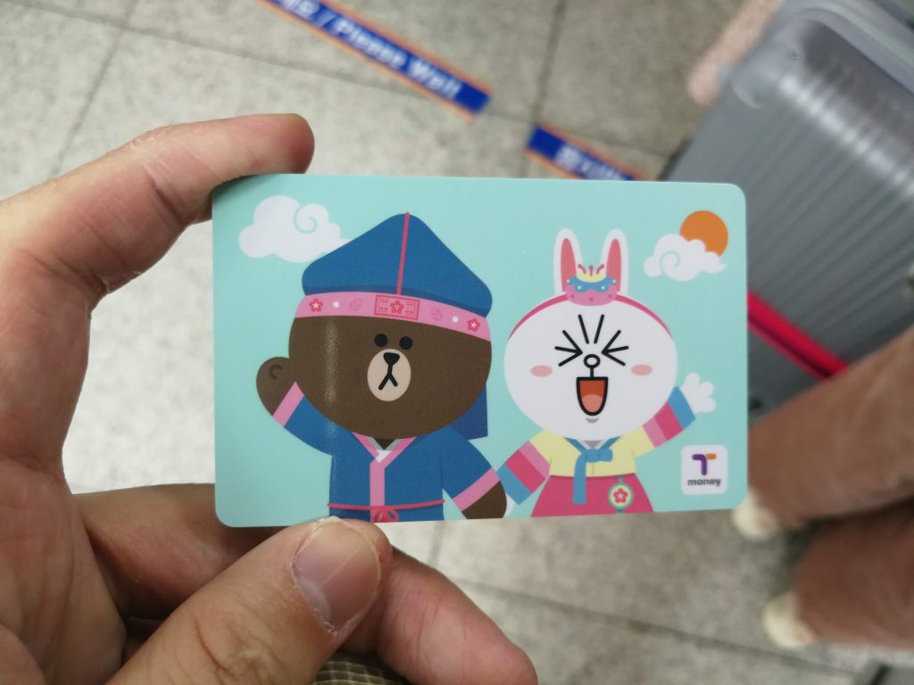 さて今回はソウル市街地からは離れた仁川国際空港への到着なので、まずは空港鉄道に乗るべくT-moneyカードを空港内の自動販売機で入手しました。今回購入したのはLINEコラボバージョンで、ブラウンとコニーが韓服を着ていました。ちなみに韓国はシンガポールで購入したStarHub SIMのローミングサービスに対応しているエリアなので、SIMカードは購入しませんでした。