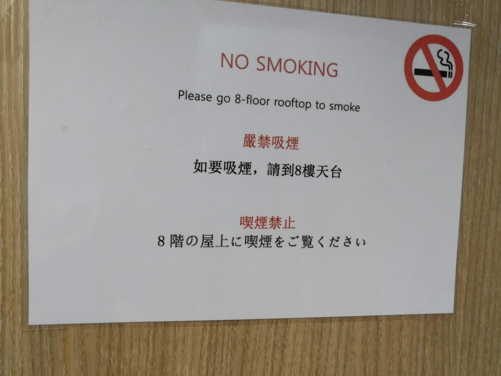 明洞に着いた頃にはなんだかんだで16時になっていたのでそのままホテルにチェックインしました。上の写真はホテルに貼ってあった禁煙の張り紙です。日本語の説明書きがちょっと詩的な感じです。