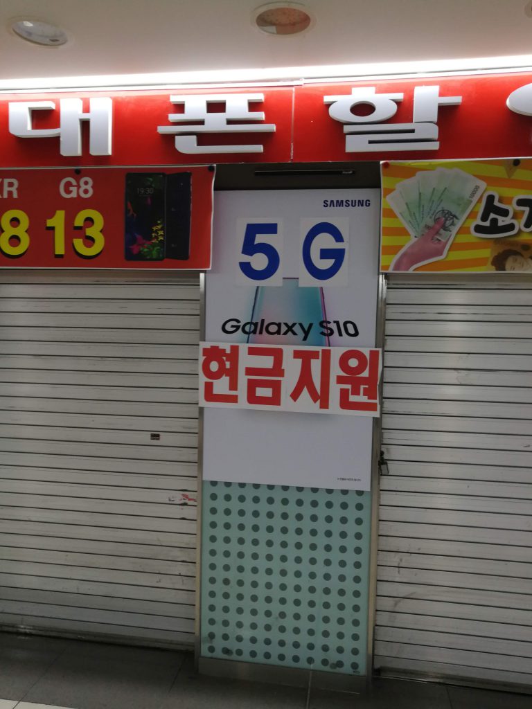 その後ぶらぶらと歩いていたらGalaxy S10の5G版の広告が出ていました。ちょうどこの頃は5Gの商用サービス開始の話題が世間(業界?)を賑わせていたのでした。