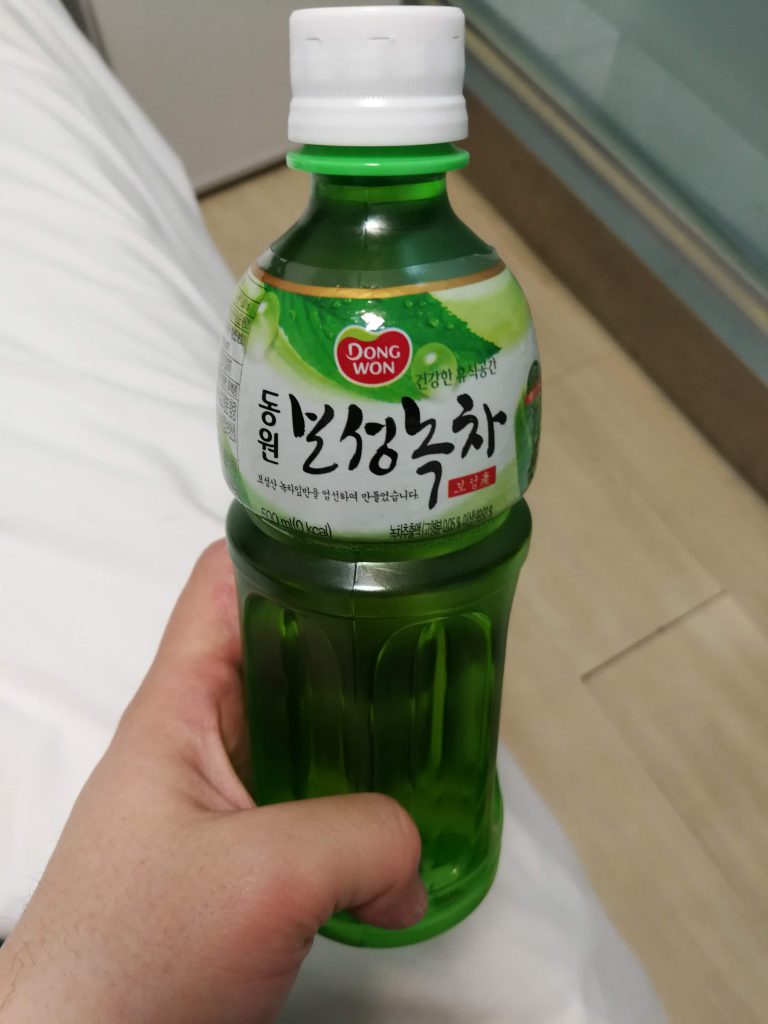 ホテルにチェックインした後は売店で夜食にラーメンと韓国焼酎を買いました。ラーメンがなかなか辛かったです。韓国焼酎も例によってハングルが読めないので変なフレーバー付きを引いてしまうのではないかと恐る恐るの購入になってしまいました。Google翻訳の画像翻訳は使えることは使えるのですが、ロゴのようにまっすぐレイアウトされていない文字は流石に翻訳してくれないのでした。