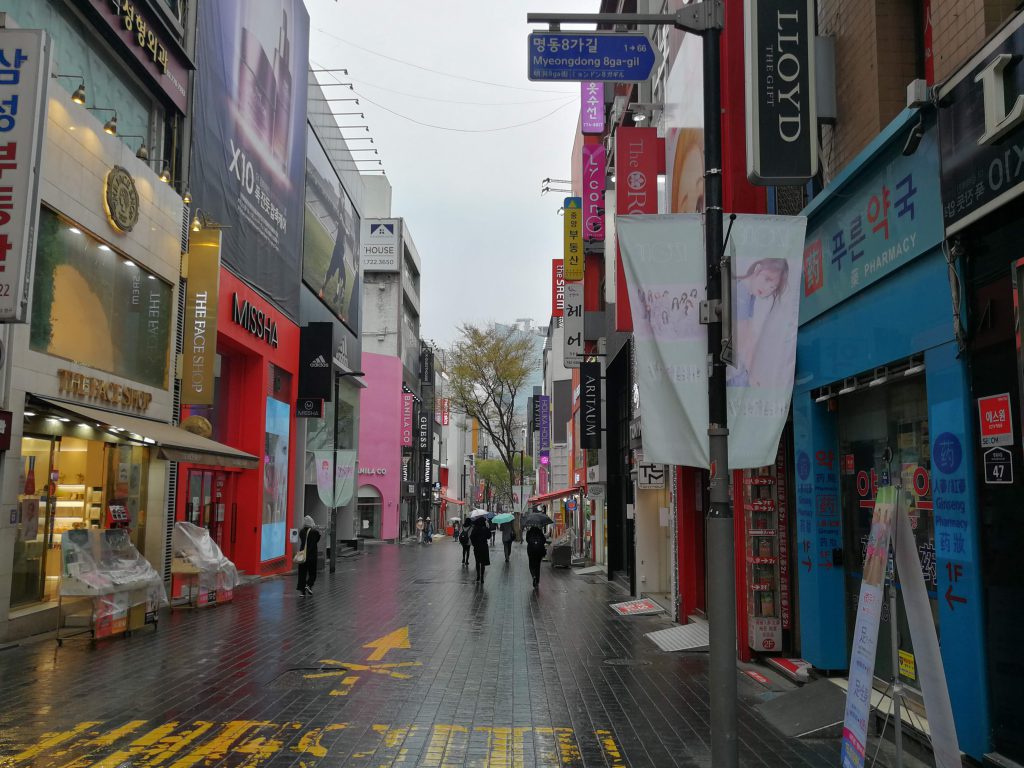 あいにく2日目は雨でした。明洞泊は1泊で、この日はホテルをチェックアウトして夜に仁川空港そばのエアポートホテルに移動する計画でしたが、チェックアウトの前にひとまず朝ごはんを探しに出かけました。
