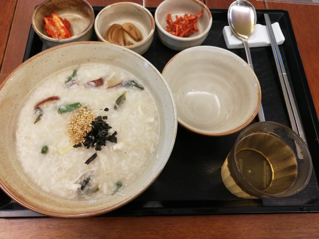 明洞周辺では朝から営業しているレストランもちらほら見かけました。どうやら朝から開いているのはお粥を出しているお店が大半のようなので、パッと目に入ったお店に入ってお粥を食べました。薬膳のような味わいもあり、健康的な朝食となりました。