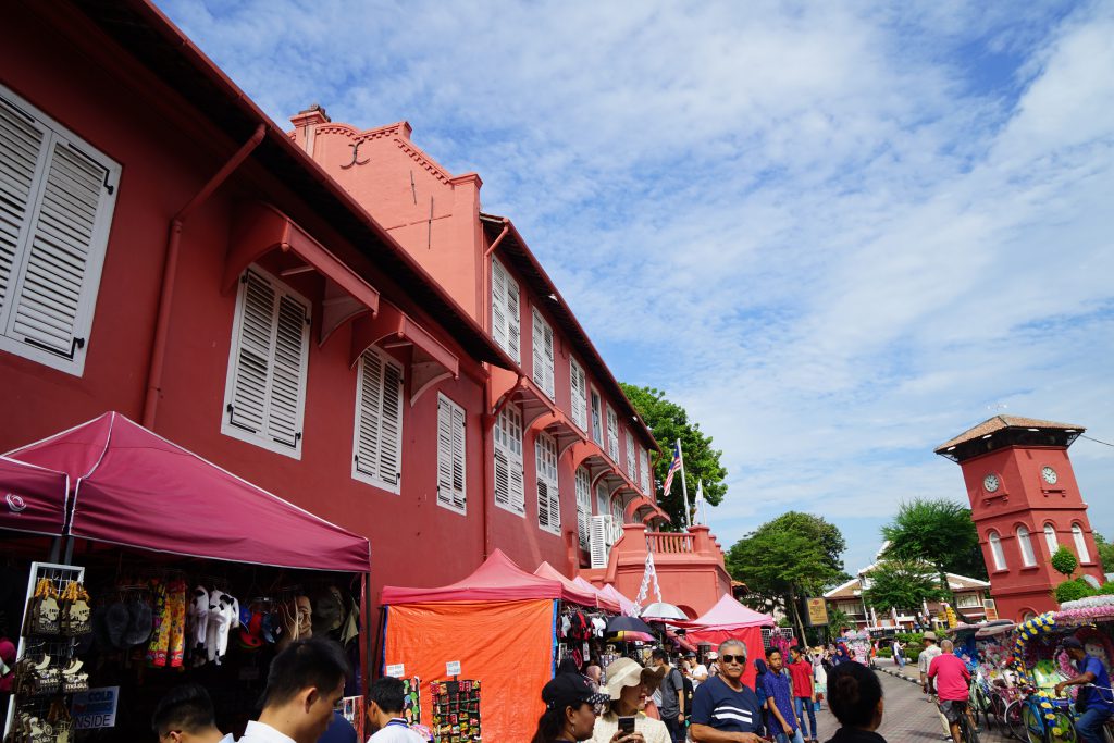 ジョンカーストリートの入口からはマラッカ川に架かる短い橋を渡ってオランダ広場へと向かいます。マラッカはマレー半島西岸に位置する都市で、南シナ海からインド方面へと抜ける海路(マラッカ海峡)に位置することもあって、古くから港町として栄え、各国の戦略的拠点として植民地化されてきた歴史もある世界遺産の街です。