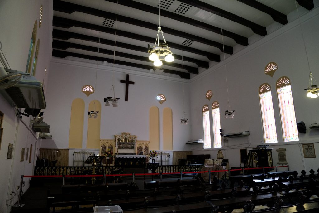 まずはオランダ広場で一番目を引くマラッカキリスト教会からです。この教会はオランダ統治時代、1753年に完成した教会だそうです。正面の写真から、天井はアーチ状の構造になっているのかと思っていたのですが、写真の通りアーチ状の構造になっているのは正面だけだったのでした。
