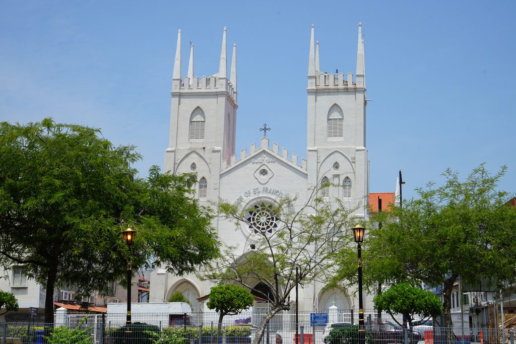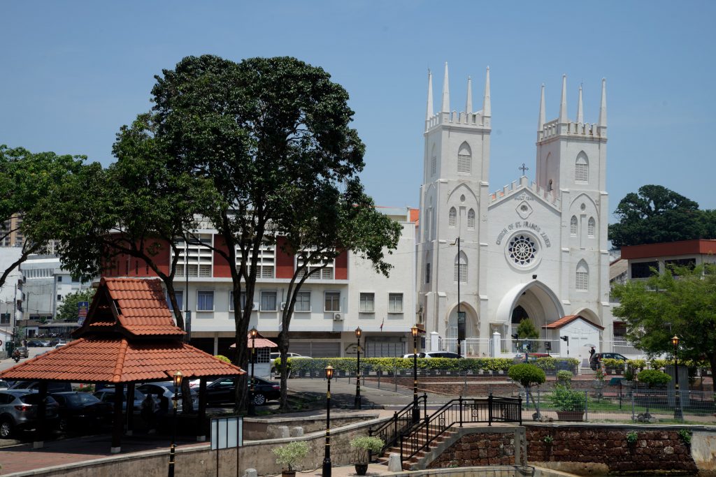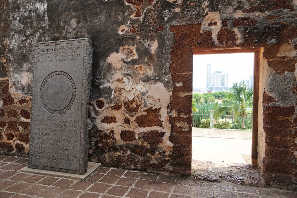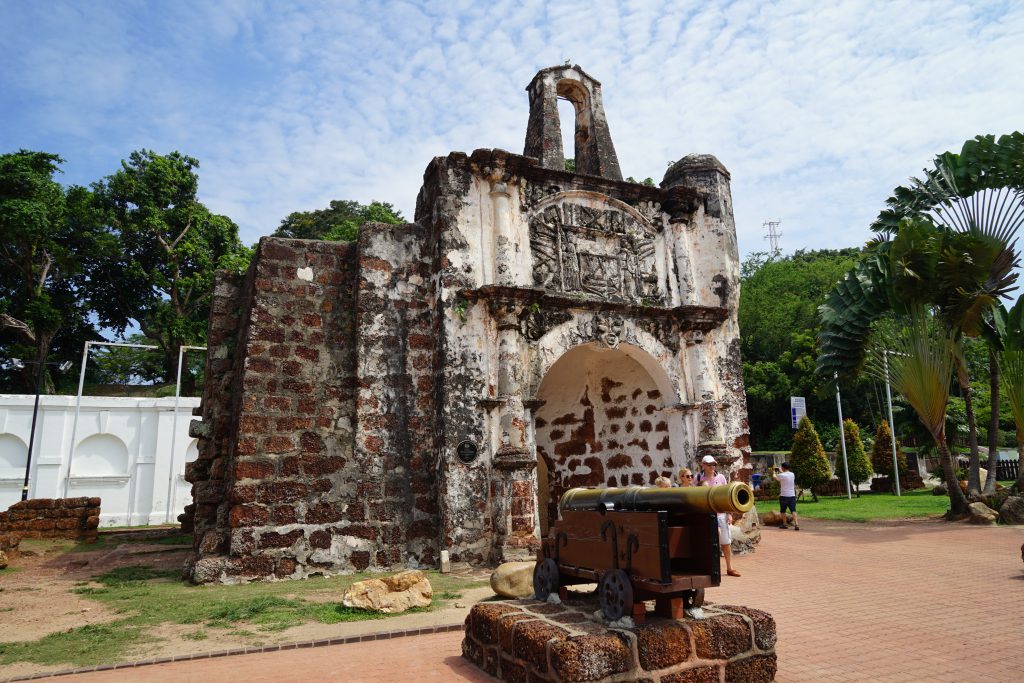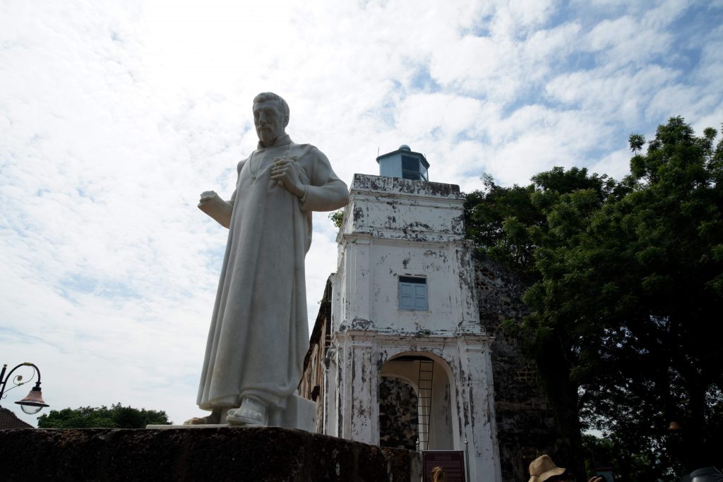 スタダイスの裏手をさらに進んでいくとセント・ポール教会にたどり着きます。実際には教会跡、というのが正しいのですが、日本でも有名な宣教師フランシスコ・ザビエルゆかりの教会ということもあり、見学する人が絶えないスポットです。フランシスコ・ザビエルも属したイエズス会が日本と中国の宣教の旅に出る際の拠点としたのがここマラッカで、フランシスコ・ザビエルが1552年に中国で死去した後、インドのゴアへ移送されるまでの間、一時的にこの教会に遺体が安置されていたこともあるそうです。また、写真の像はフランシスコ・ザビエルの像です。