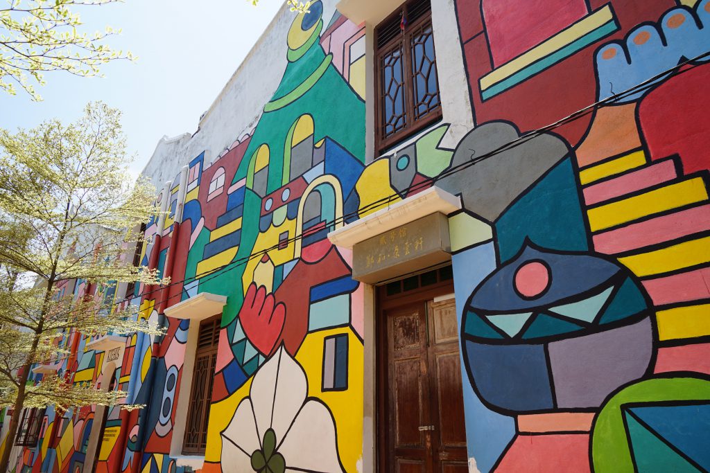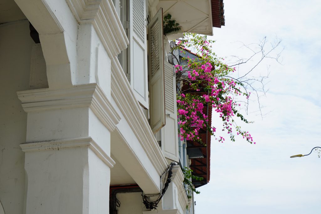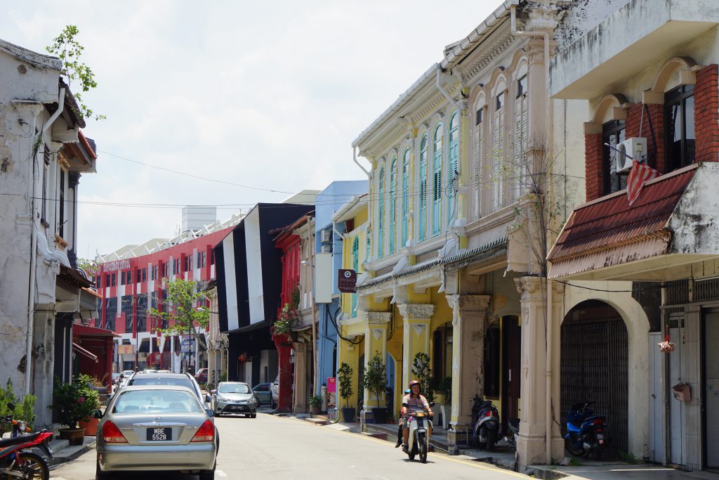 オランダ広場に着いた後は、橋を渡り反対側のジョンカーストリートを散策しました。シンガポールにもあったようなカラフルなショップハウスがここにも残っていました。