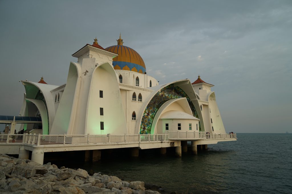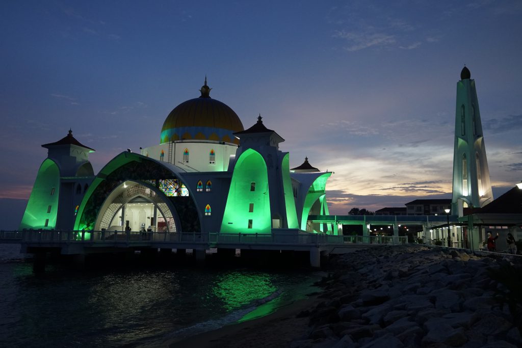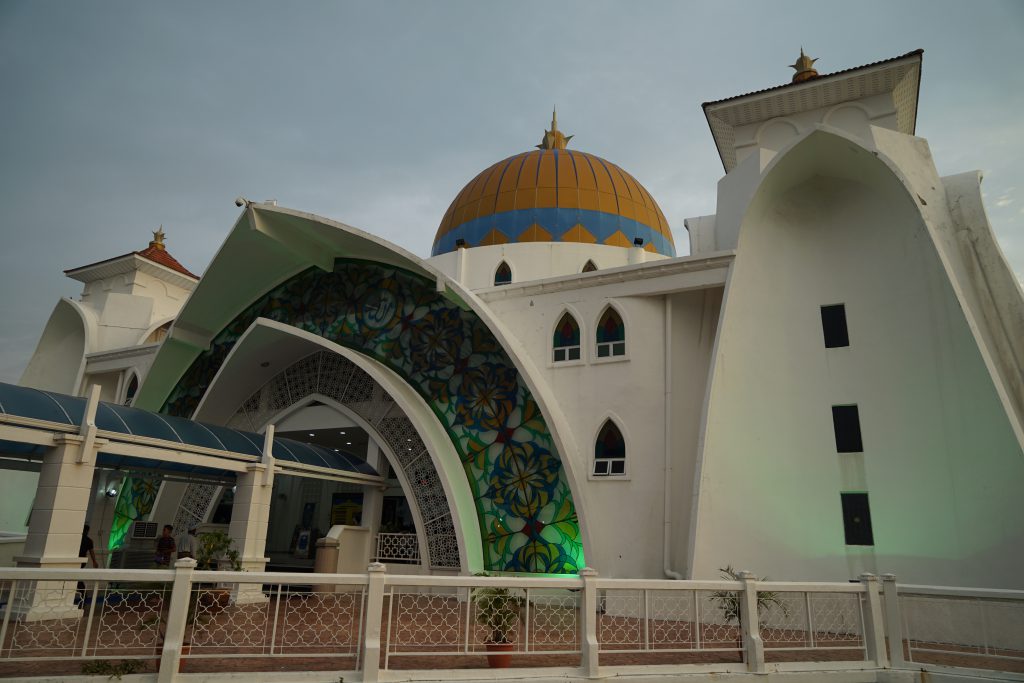 この海峡モスク、名前の通り本堂の部分がマラッカ海峡の上に浮かんでいるという実におしゃれなモスクです。ギリギリでしたがなんとか夕景に間に合いました。