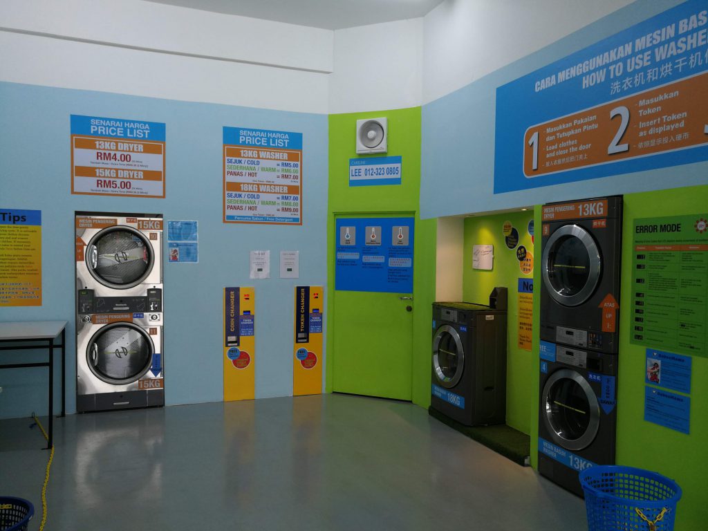 マレーシアは比較的少額(1リンギット:約25円)から紙幣が採用されているため、洗濯機に直接お金を投入するのではなく写真中央の黄色いマシンで専用のコインを購入し、そのコインを洗濯機に入れるシステムになっていました。それ以外は至って普通のコインランドリーなので、特に迷うところはありませんでした。
