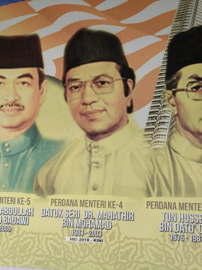 さて、この看板のマハティール・ビン・モハマド氏のところをよく見てみると、就任期間のところに張り紙がしてあります。第4代首相として22年間首相を務め、ルックイースト政策でも有名なマハティール氏ですが、2018年に第7代首相として再登板していたため追加の張り紙がされているというわけです。マレーシアではマハティール氏の再登板までは同じ人物が間を空けて首相を2回務めたことはない4ので、こうなることは想定していなかったんだろうなあ…と思いながらこの看板を眺めていたのでした。