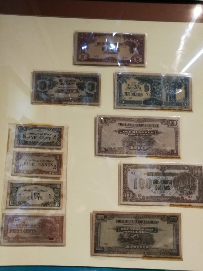 日本統治時代を紹介するコーナーでは日本刀や日本政府発行の通貨などが展示されていました。”THE JAPANESE GOVERNMENT”の100″ドル”札、というのがちょっと不思議な気分です。