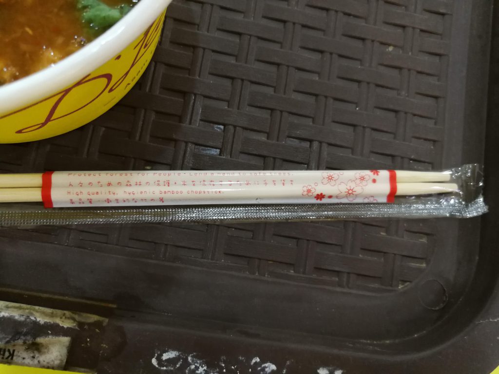 ちなみにアッサムラクサに付いてきた使い捨ての箸は「クリスタルラップ」でした。裏の文言も意味は分かりますが、どうしてユルめのフォントで書いたのでしょうか…