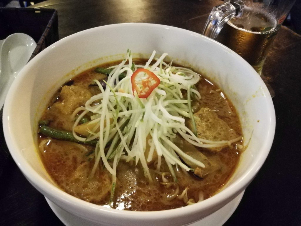 海峡モスクからはGrabでホテルに直行せずオランダ広場周辺で下車し、ジョンカーストリートのお店で晩ごはんにしました。雰囲気のある半屋外のお店でカレーラーメンとビールです。海外旅行に行くのが難しい昨今ですが、次に東南アジアのぬるい空気を感じながらダラダラとビールがいつになるのでしょうか…