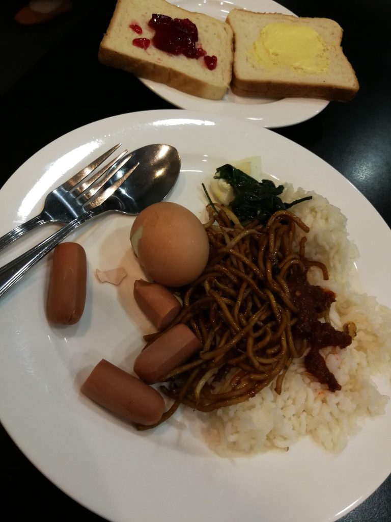 ビュッフェの内容はマレーシアっぽい茶色い中華でした。甘めの味付けです。自宅だとそんなに食べないですが、こういうところのゆで卵はつい食べちゃうんですよね。