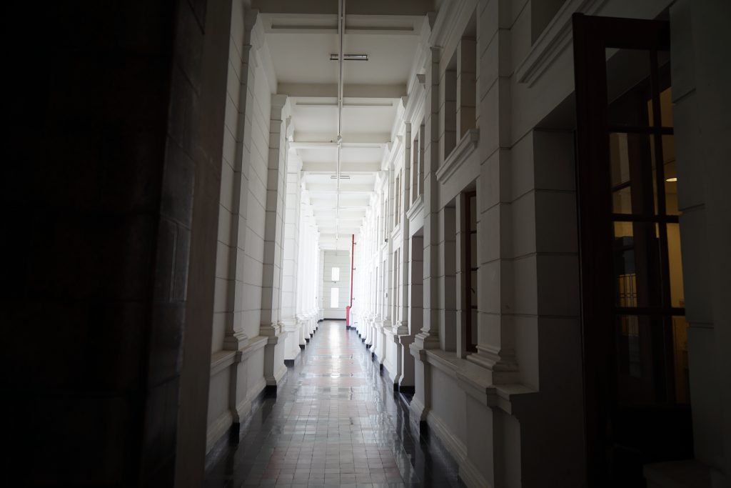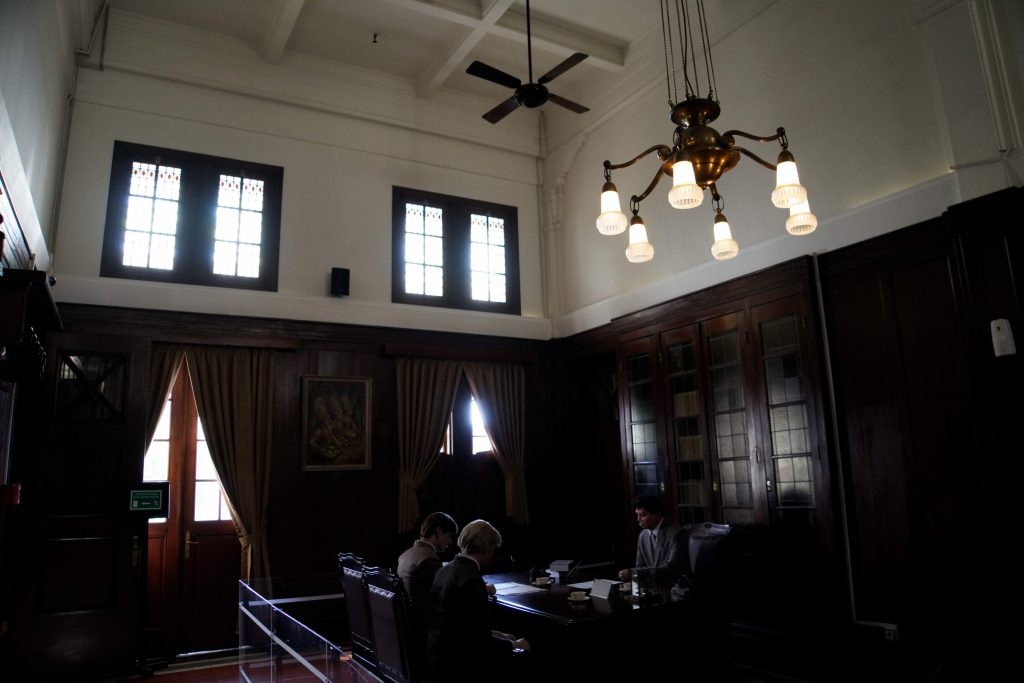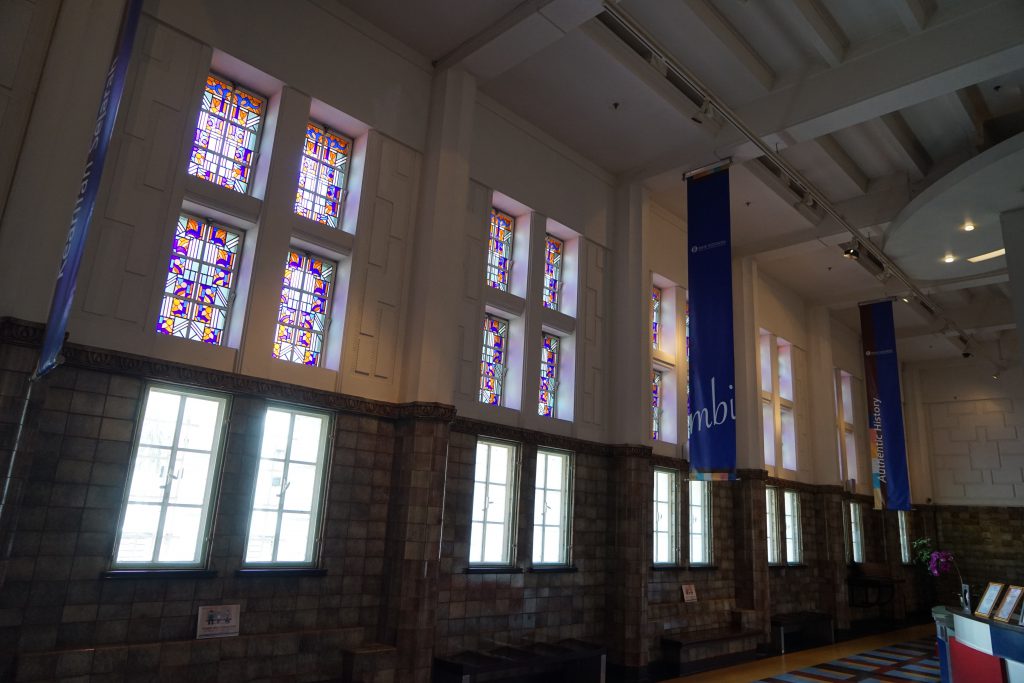 建物全体の造りはなかなか重厚で、窓がステンドグラスになっていたり、中庭に面する広々とした回廊があったりしました。植民地に設置する(準)政府機関の建物には宗主国の権威を示すというような役割もあったんでしょうね。