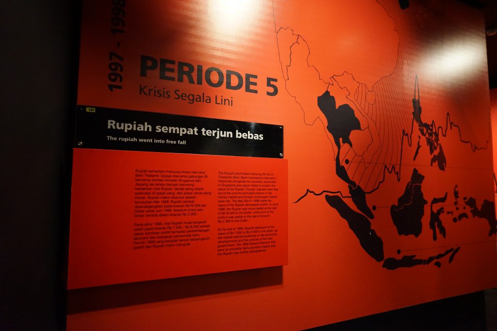 また、この銀行博物館は植民地時代の歴史だけを展示しているわけではなく、現代の中央銀行の歴史についても展示しています。写真は1997年からのアジア通貨危機に関する説明パネルです。