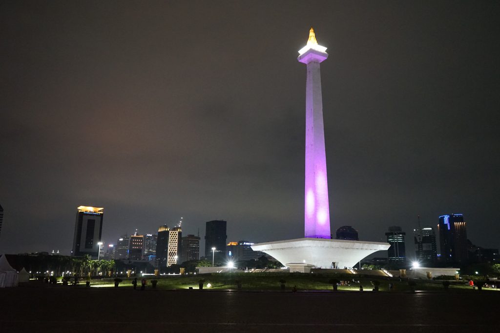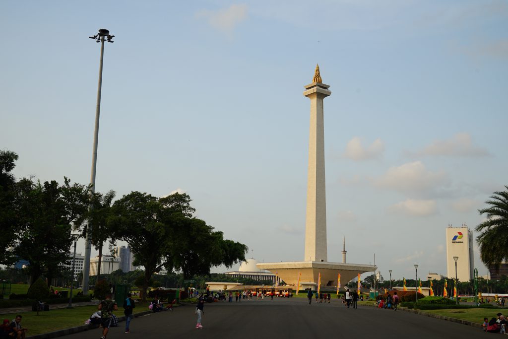 さて、Glodok市場の次にやってきたのはこちら、モナスです。「モナス」というのは”Monumen Nasional”を略した呼び名です。モナスはインドネシアの独立を記念した記念碑であり、ムルデカ広場の中央に建てられています。ちなみにムルデカ:Merdekaはインドネシア語・マレー語で「独立」という意味です。マレーシアの首都・クアラルンプールにも同名の広場があります。最上部は展望台ですが、この日は閉館中ということで外から眺めるだけでした。高層ビルの建設も続いているジャカルタですが、まだまだムルデカ広場の周辺は開けていることもあり、モナスが空に映えていました。