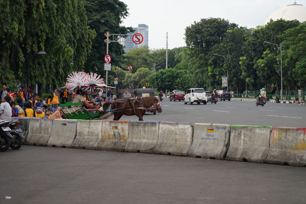 ムルデカ広場を出て、近くにあるイスティクラル・モスクとジャカルタ大聖堂の方へと歩いていきました。道中、馬車や屋台を見ましたがどちらもなんともレトロな感じでした。屋台はちょっと気になったのですが、ここで食あたりは…と思い挑戦しなかったのでした。