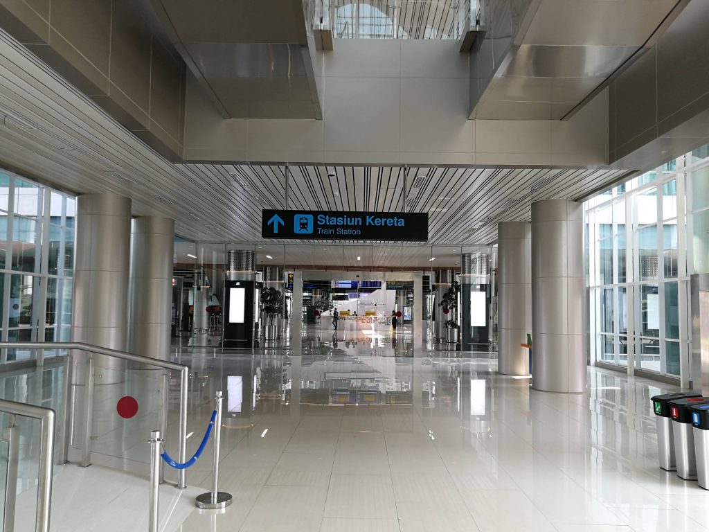 入国審査を通り、広い空港を歩き回ってようやく空港から市街地に向かう鉄道の入り口に到着です。この鉄道は2017年開業ということで、駅舎も含めてまたピカピカです。