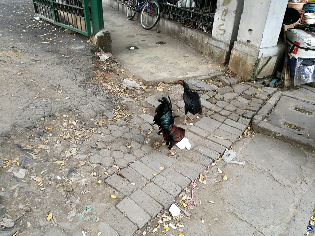 その後Googleマップでコインランドリーの場所を調べて行ってみようと街中に出てみたのですが、あまりの交通量の多さに道を渡るのを挫折して戻ってきたのでした。写真は道中見かけた放し飼いのニワトリです。東南アジアの鶏肉料理がやたらとうまいのはのびのび育っているからなのかもしれません。(こういう所で飼っているニワトリは採卵用のような気もしますが…)結局この日は前日の寝付きが悪く1疲れていたこともあって、ホテルの近くをうろついていたら日が落ちてきてしまいコンビニに行くだけ行っておしまいにしてしまったのでした。