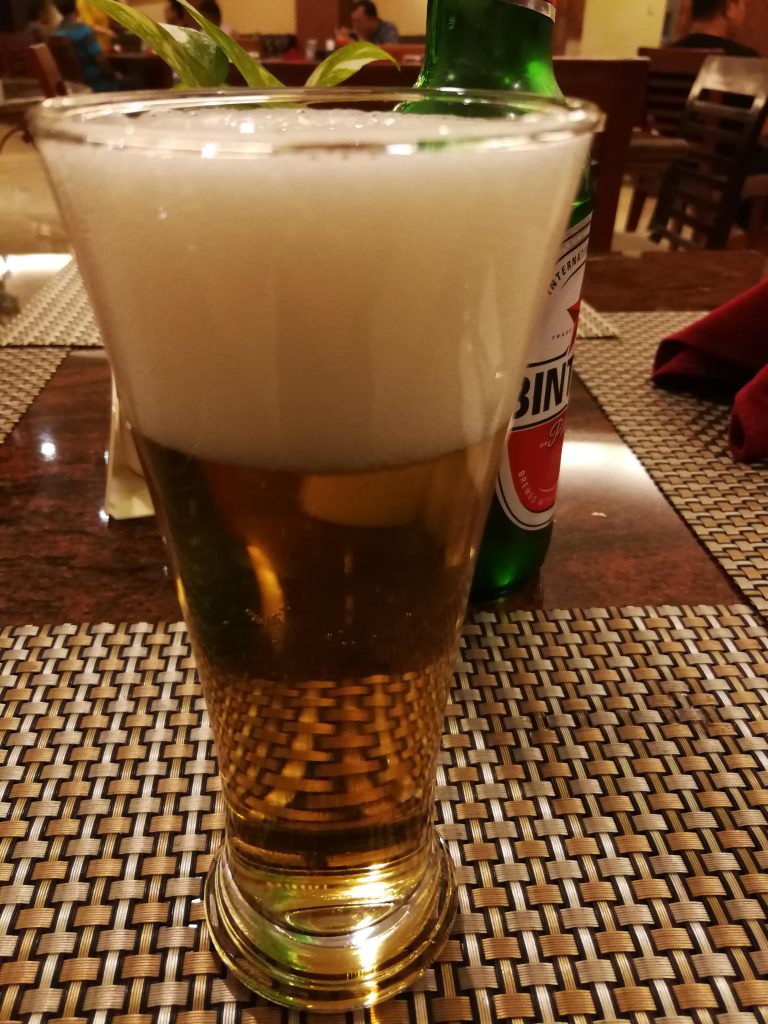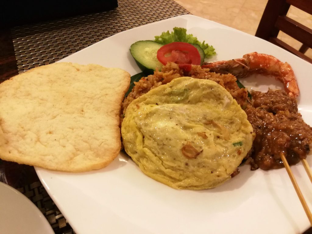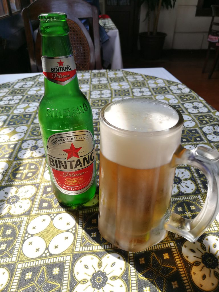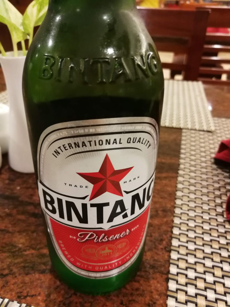 そんなわけで晩御飯はホテル内のレストランで済ませてしまいました。せっかくインドネシアに来たのだからと、ベタではありますがサテーとナシゴレンをオーダーしました。ビールはインドネシアを代表するビールであるビンタンビールです。