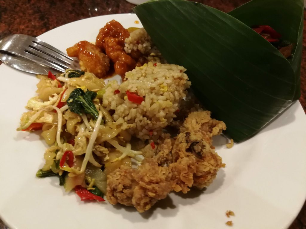 モナス周辺の観光を終えた後はホテルのそばに戻って晩御飯です。2日連続でホテルのレストランでご飯はちょっとなあと思い、車の波を頑張って避けながら歩き回ってみたものの決め手に欠け、結局無難に中華料理風のお店で野菜炒めとフライドチキンを食べたのでした。