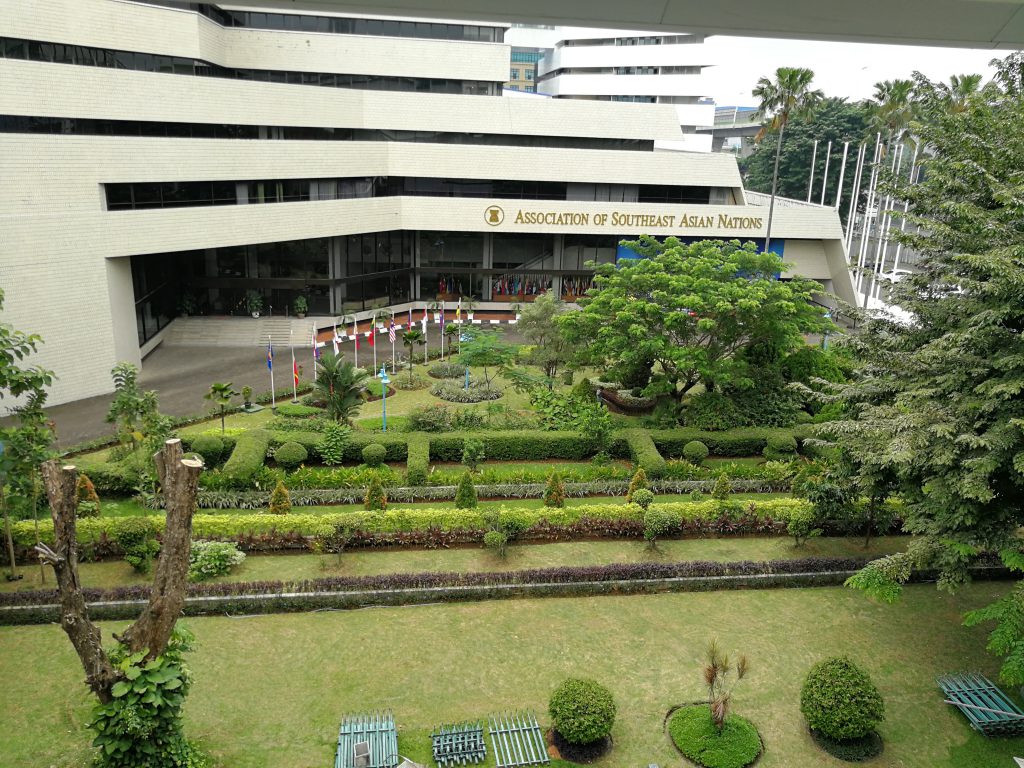 そりゃあまあASEAN加盟国なのでASEAN駅があってもいいけどストレートだなあ…とちょっと思っていたのですが、ASEANの事務局が駅のすぐ隣に建っていたのでした。それなら納得のネーミングです。