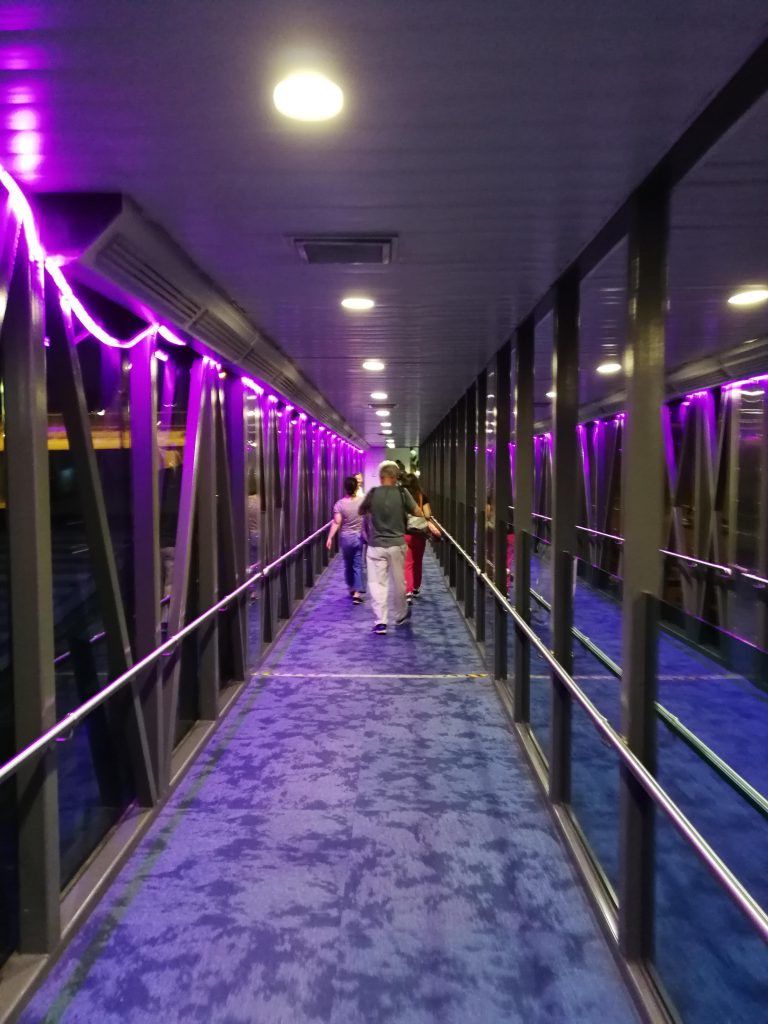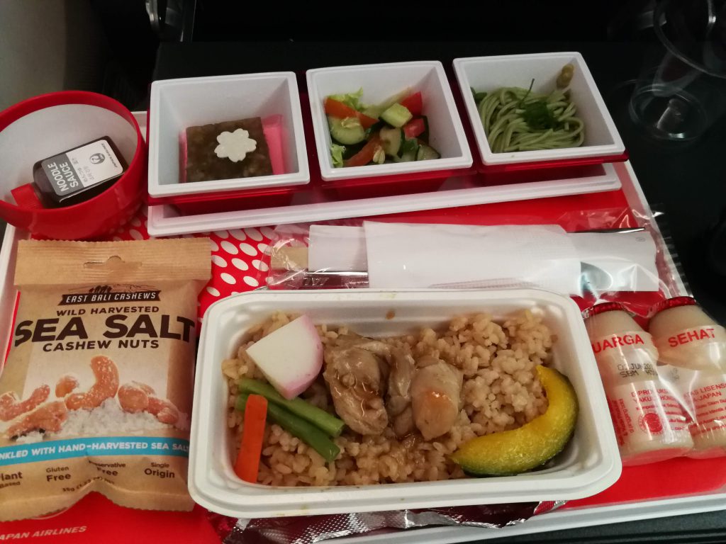 その後はなぜかピンクのLEDでライトアップされた怪しいボーディングブリッジを通って搭乗し、一路成田空港を目指しました。7時間半ほどの夜間のフライトなので、機内食を食べて寝て起きたらば成田空港です。