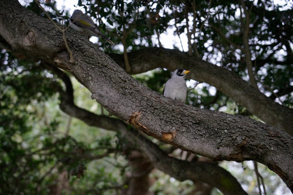 さて、いよいよ屋外の席でベーグルを食べるぞという段になったところで、私のごはんを狙う不届き者がやってきたのでした。そう、そこらへんを飛んでいる鳥です。この鳥は九官鳥の親戚のインドハッカでしょうか。オーストラリアでは外来種扱いのようです。堂々と「くれるんだよね?」という顔をしていますが、当然一口もあげませんでした!