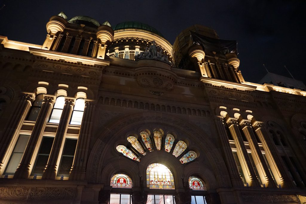 晩ごはんの後はこの後に書くVivid Sydneyへ行くつもりだったのですが、QVBがライトアップされていたのでVivid Sydneyへ行く前に建物の写真を撮りました。