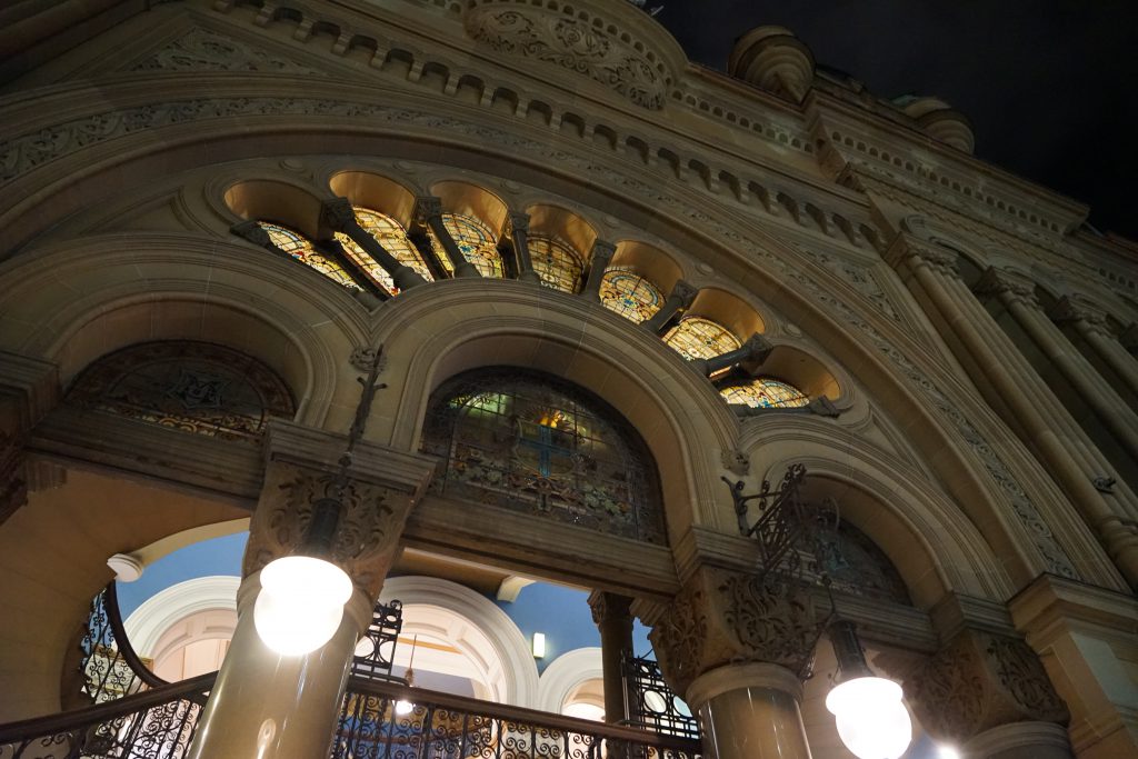 入り口のステンドグラスがなかなかおしゃれです。QVBを知らない人はこれをショッピングモールだとは思わないでしょうね…