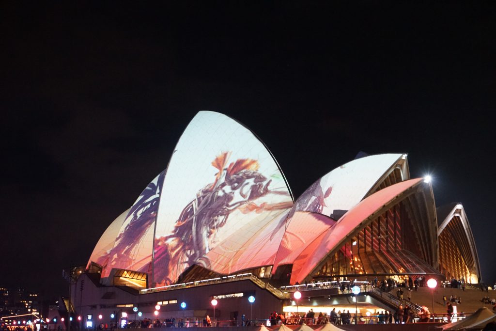 さらにさらに、サーキュラー・キー沿いで開催ということは当然シドニー・オペラハウスもライトアップの対象となります。世界遺産でも容赦なくプロジェクションマッピングの対象とされているあたり、シドニーの本気度合いが見て取れます。