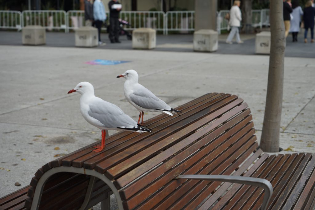 QVBを出た後はダーリングハーバーの方まで歩いていきましたが、小雨が降り始めてしまいました。海沿いではやはりカモメを多数見かけたのですが、どのカモメもぷっくりしていてちょっとかわいかったのでした。