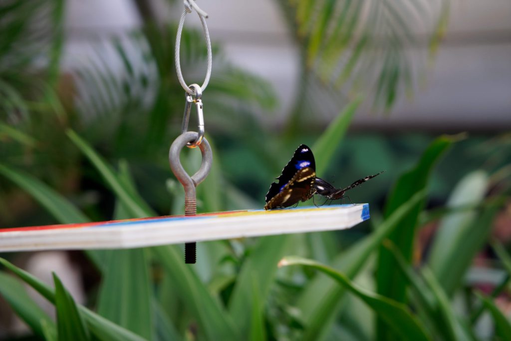 温室のエリアには蝶や小鳥もいました。ここまでの旅行中もカラフルな鳥は見かけていましたが、蝶もなかなか独特の色合いです。