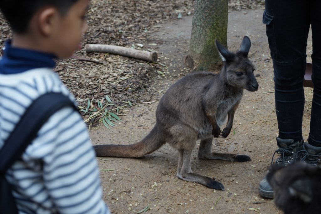 そして定番、カンガルーです。赤ちゃんカンガルーのお散歩タイムで、背中を撫でさせてもらうことができました。なかなかかわいかったです。