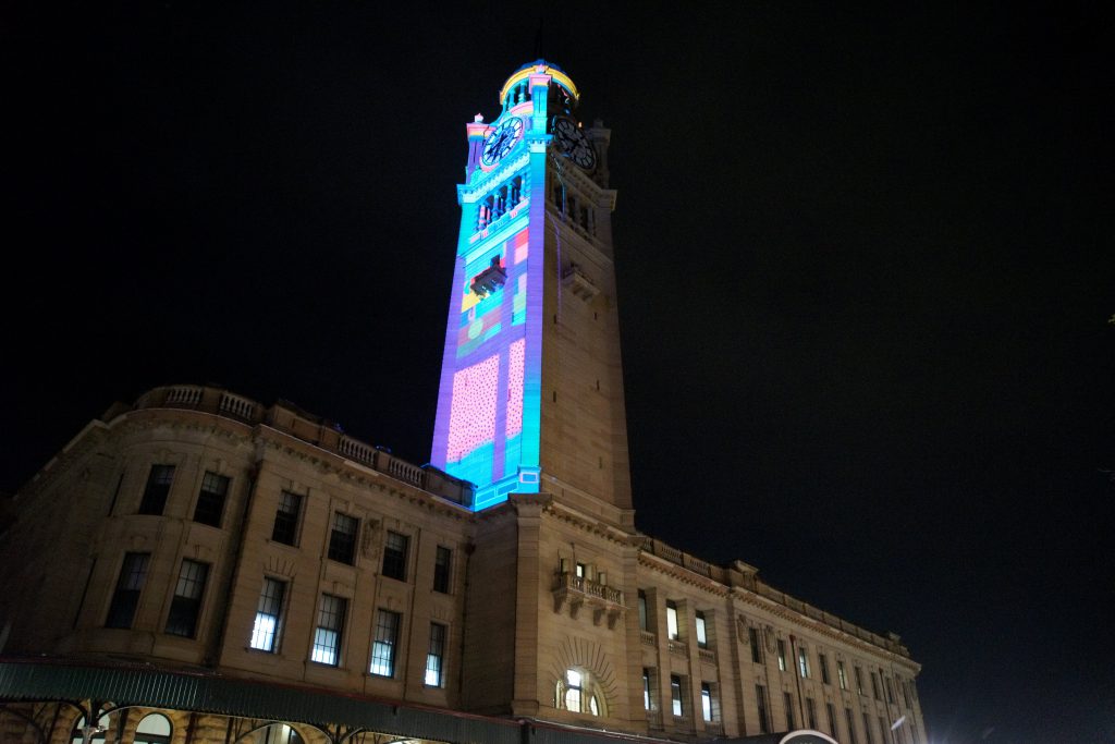 さて、セントラル駅まで戻ってくると、Vivid Sydneyの一環でしょうか、こちらもプロジェクションマッピングされていました。