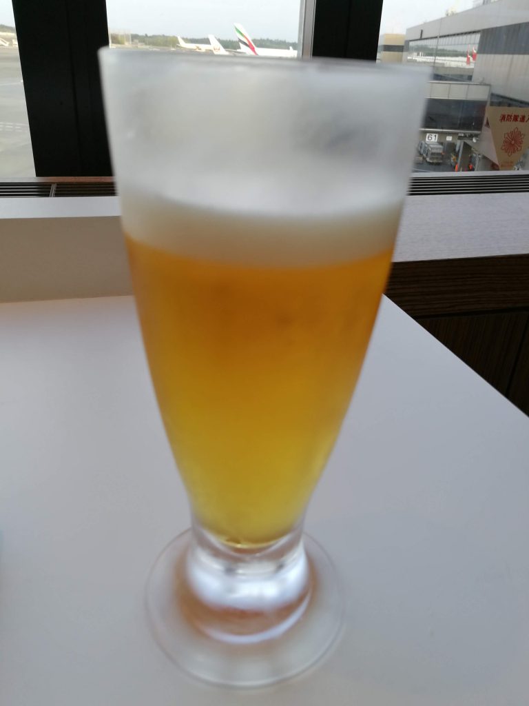 ともかくギリギリではありましたがチェックインし、定番のラウンジカレーを食べながらビールです。