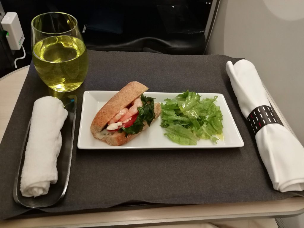 機内食を食べてお酒を飲みつつ「翔んで埼玉」と「メリー・ポピンズ・リターンズ」を見た後は座席をフルフラットにして就寝です。さすがにフルフラットにできるとぐっすり寝られます。起きてからは朝食のサンドイッチをいただきました。朝食を何にするか聞かれた際にCAさんに「ぐっすりおやすみでしたね~」と言われたのは若干恥ずかしかったです…