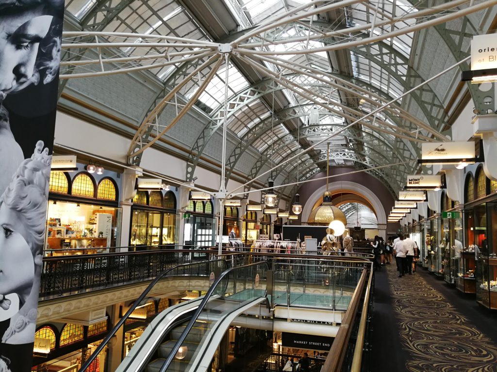 電車を乗り間違えたりもしましたが、無事Town Hall駅で下車してクイーン・ヴィクトリア・ビルディング、略して”QVB”にたどり着くことができました。非常に壮麗な造りのこちらの建物はその名の通り、ヴィクトリア女王の治世である1898年に完成した歴史あるビルです。戦後には老朽化のため取り壊そうという議論もあったようですが、結局1984年に大規模改修を行い現在のような建物全域をショッピングモールとして営業するスタイルが確立したとのことです。その後2006年にも改修を行い現在に至ります。