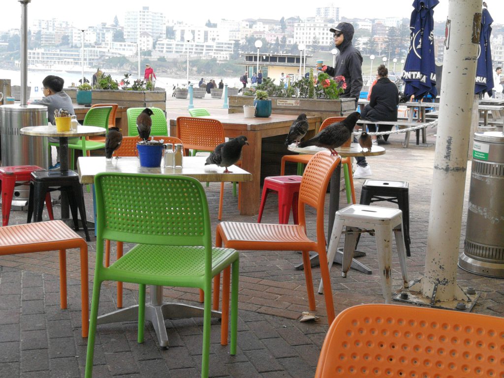 ご覧の通り、海辺のカフェの空いているテーブルは人間のおこぼれをもらおうとしている鳥で大混雑になっていました。