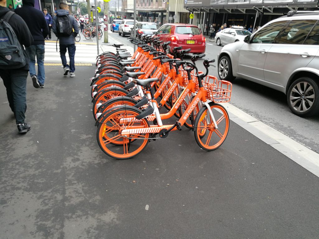 ボンダイビーチから戻ってきた後は、ホテルのそばのスーパーマーケットがあるショッピングモール、”Broadway Sydney”へ行きました。写真は道中見かけたmobikeです。この時は乗っていく先のあてがなかったので乗りませんでした。