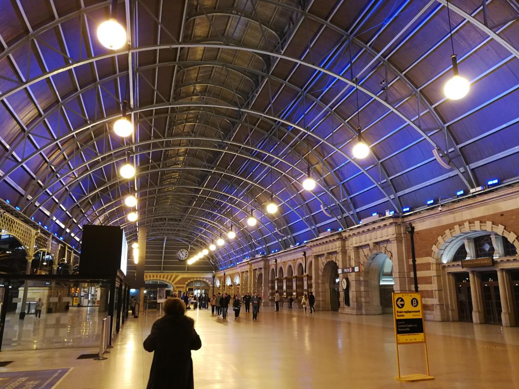 ちなみにQVBは建物自体も名物ではありますが、アーケード内に取り付けられている2つの大時計も名物となっています。こちらはロイヤル・クロックと呼ばれている時計です。黒く写っている上部に機械仕掛けがあり、毎正時にイギリスの歴史を表現するジオラマが動作するそうです。今回は動いているところは見られませんでした。