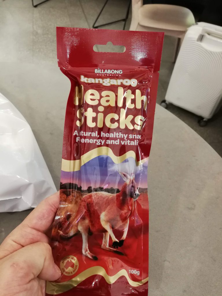 ラウンジに行く前にお土産を物色していると、カンガルージャーキーを発見しました。肉製品の日本への持ち込みは面倒そうなので買ってその場で食べてみましたが、うーん、やたらと固くて味も醤油でとにかく煮込んだような味で、あまり美味しくはありませんでした…濃いめに味をつけないと臭いのでしょうか…?ともかくよい経験にはなりました。