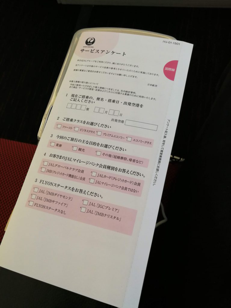 そしてこのときがJMBサファイア達成のフライトだったからなのかどうなのかは分かりませんが、サービスアンケートへの回答をお願いされました。こんなのもあるんですね!