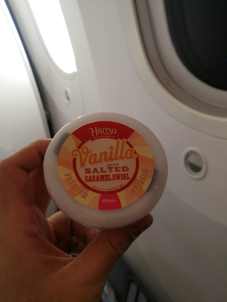 そして機内でも朝食が出ました。アイスが塩キャラメル&バニラアイスでなかなか美味しかったです。