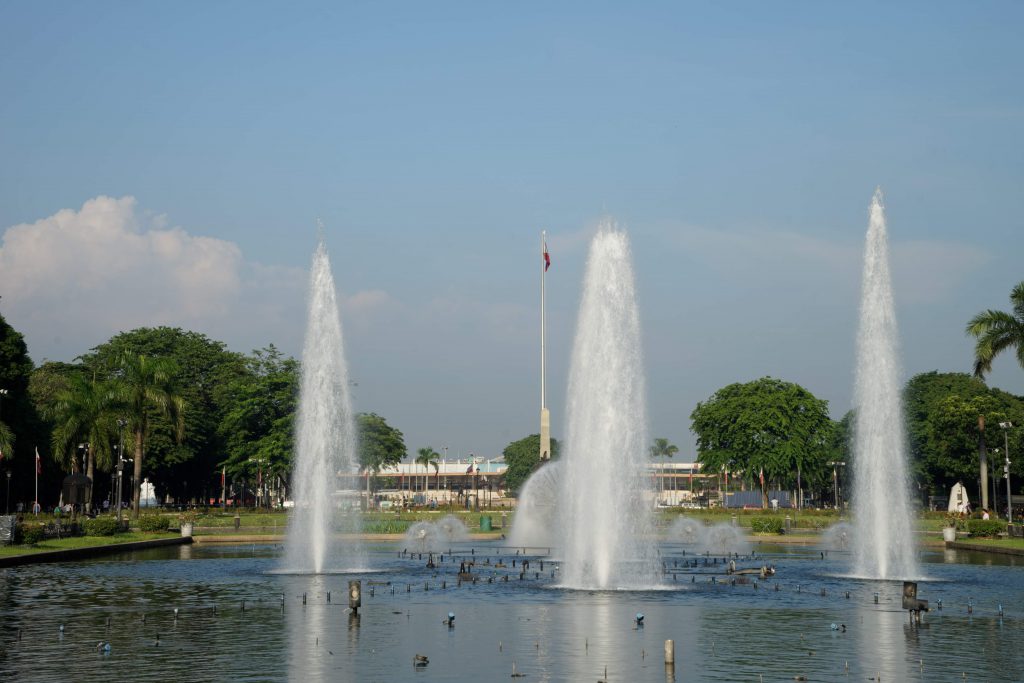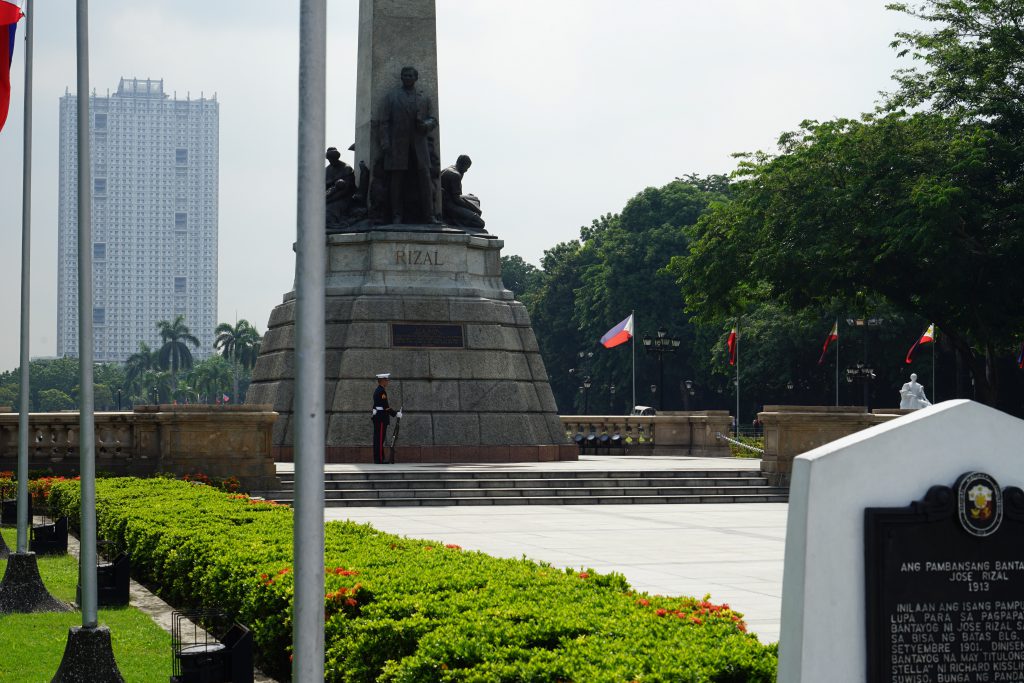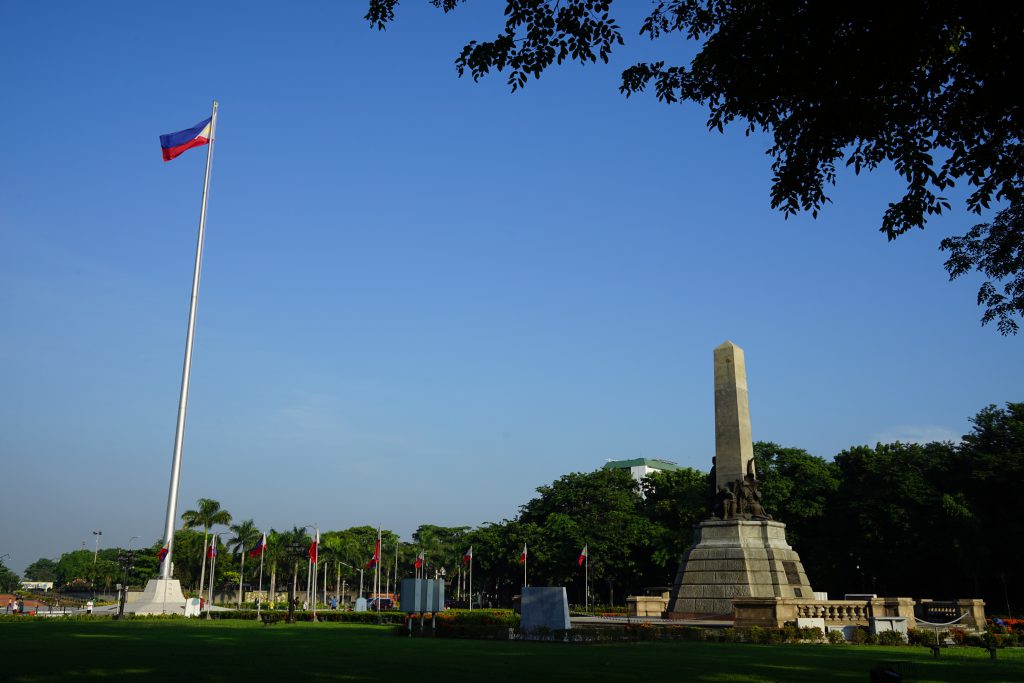 リサール公園は東西に長い公園になっていて、中心部へ進んでいくと高く掲げられたフィリピン国旗と記念碑が目に入ってきます。