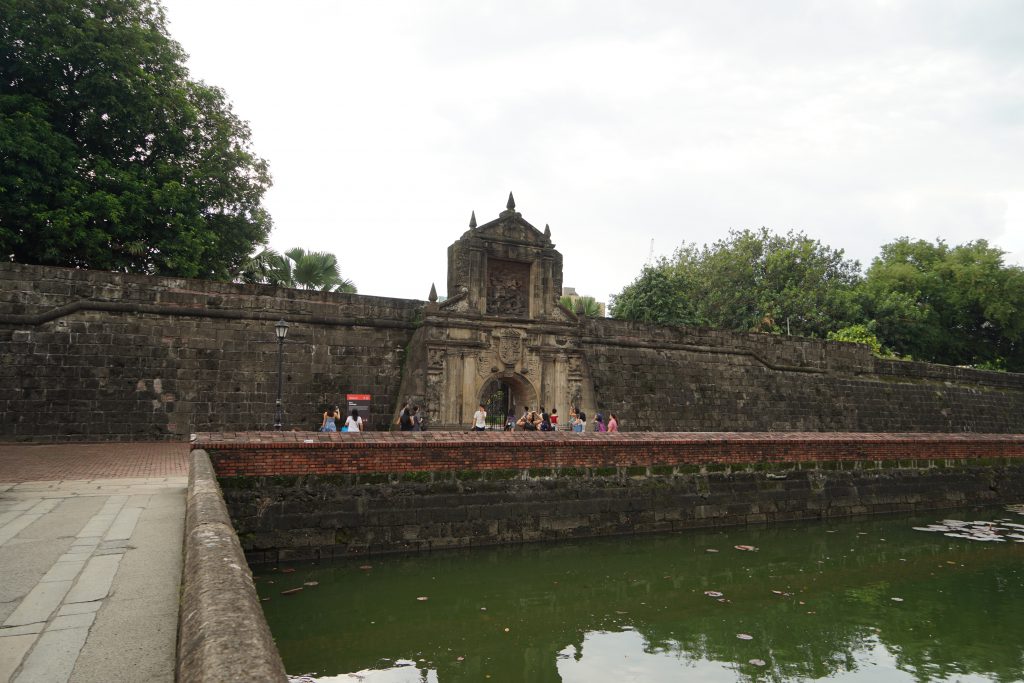 正直な所「ザ・観光地」というところが少ないマニラですが、ここ、イントラムロスはそんなマニラの数少ない「ザ・観光地」なスポットといえます。イントラムロスはこの門に書いてあるとおり”INTRAMUROS”と綴り、スペイン語で”INTRA(内部に)”、”MUROS(壁)”で「壁の内側」というような意味だそうです。イントラムロスはこの門を含め、壁で囲われた要塞のような地区になっています。つまり名前はそれをそのまま表しているというわけです。