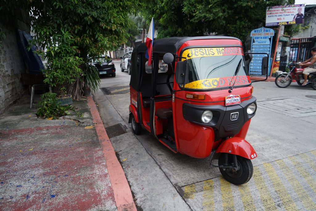 こちらは1枚目のジプニーの写真と同じく、フィリピンの大統領官邸であるマラカニアン宮殿4のそばで撮ったトゥクトゥクの写真です。ジプニーではないですが、こちらもなかなかのデコレーション具合です。