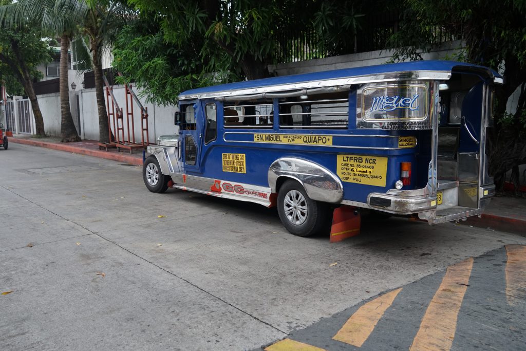 さて、マニラ市街地では上の写真のようなバチバチにデコレーションした異様に長い自動車をよく見かけました。これは「ジプニー」と呼ばれる乗合自動車で、路線バスのように決まったルートを走っていて、そのルート上であれば適宜乗り降りできるシステムだそうです。トラックを無理やり改造したようなフォルムがなかなか独特です。地元の方が乗り降りしているのは滞在中よく見かけましたが、Grabが快適なのと、流石にちょっとビビってしまい、ジプニーには乗らずじまいでした。