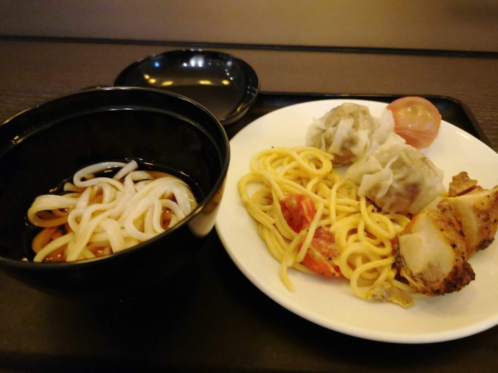 今回は羽田からの深夜便ということで、退勤後に自宅に寄ってから空港へ向かいました。神奈川県民としては羽田は近くて便利です。そんなわけで到着後早々にチェックインしてラウンジです。今回はエコノミークラスの航空券ですが、JMBサファイア1のおかげでサクララウンジが使えるのでした。
